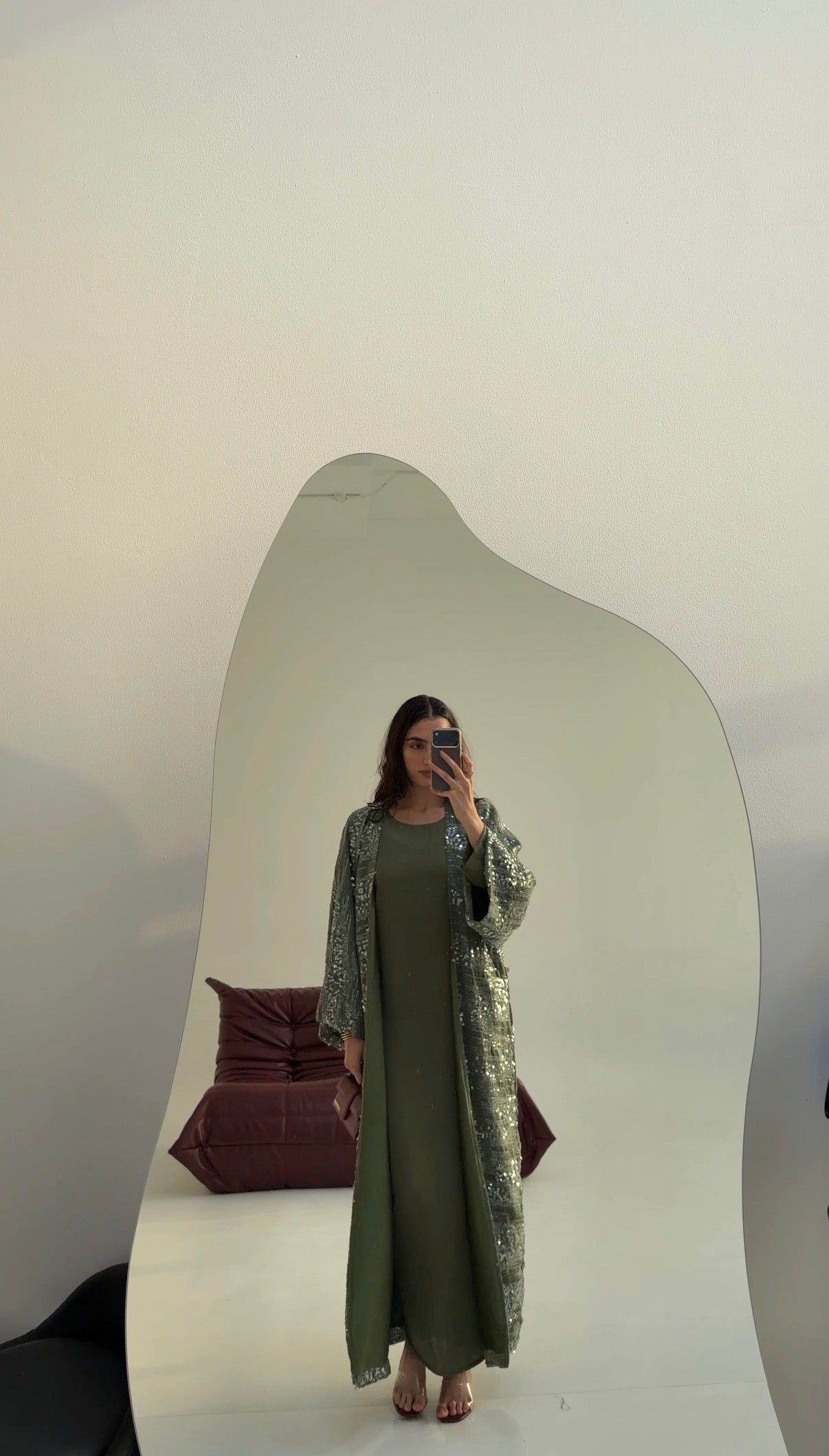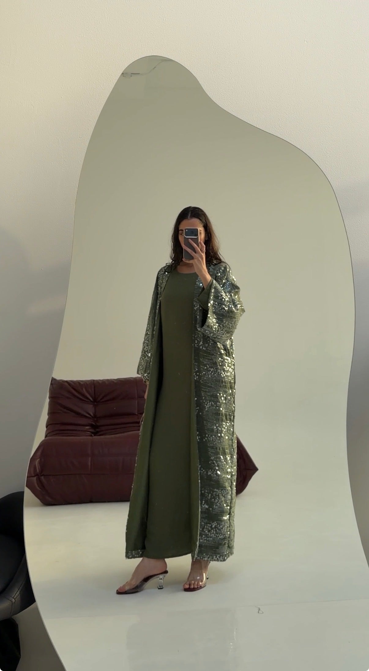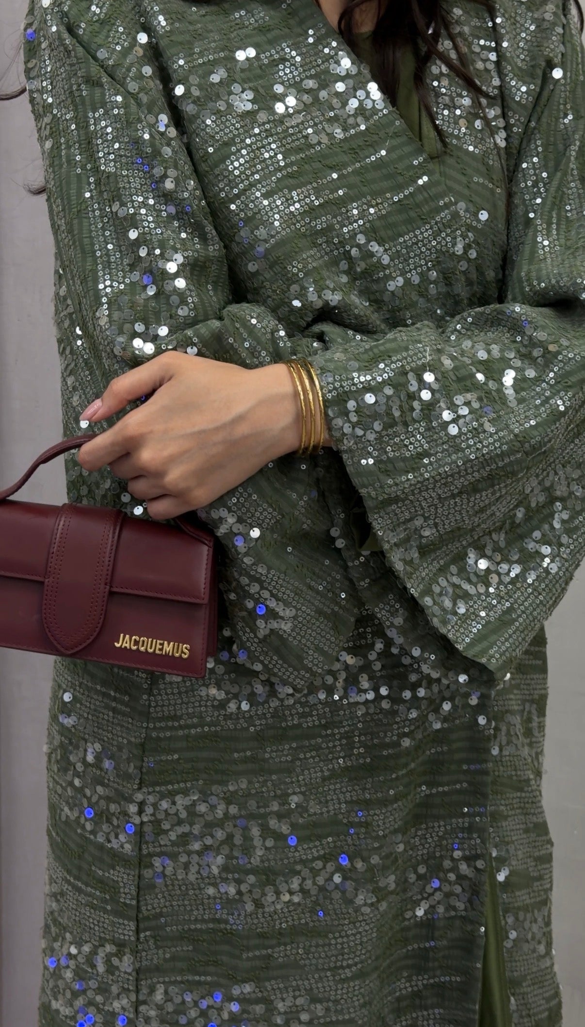 There’s something about a soft shimmer that just feels right. The Olive Gleam Sequin Bisht moves with light — olive-toned fabric scattered with silver sequins that catch every step. Fully lined so it’s never see-through, it balances flow and structure perfectly, giving that effortless kind of glam you can wear day or night.
