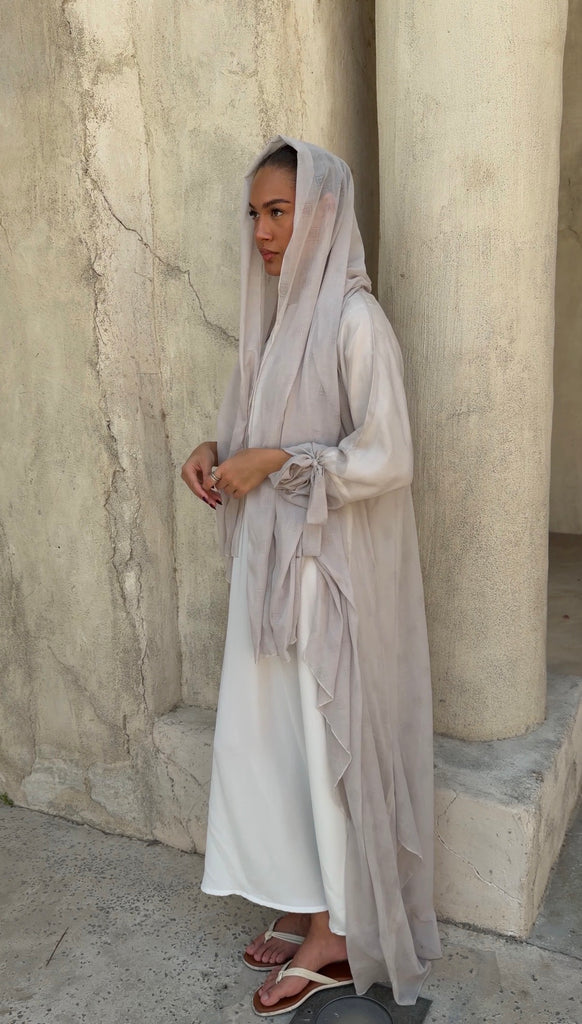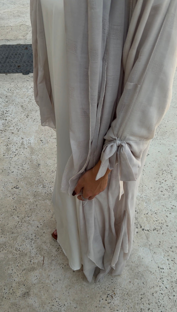 Feather-light and super sheer, this gauzy layer drapes like a whisper. The textured weave gives subtle dimension while the fabric softly skims (and lightly clings) to the body, keeping it airy and breathable. Effortless for warm days yet polished for evenings — cinch it or let it flow.