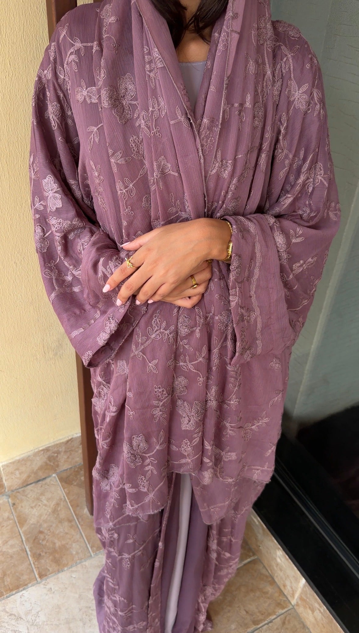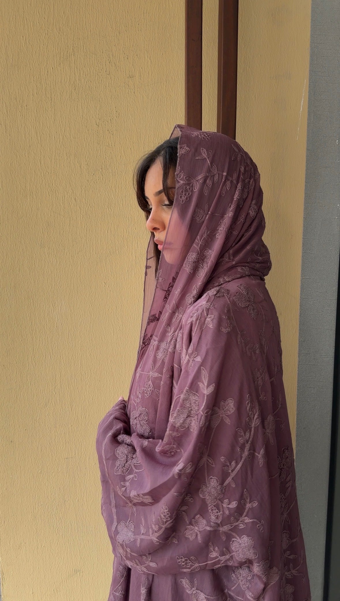 Lightweight textured georgette with tone-on-tone floral embroidery