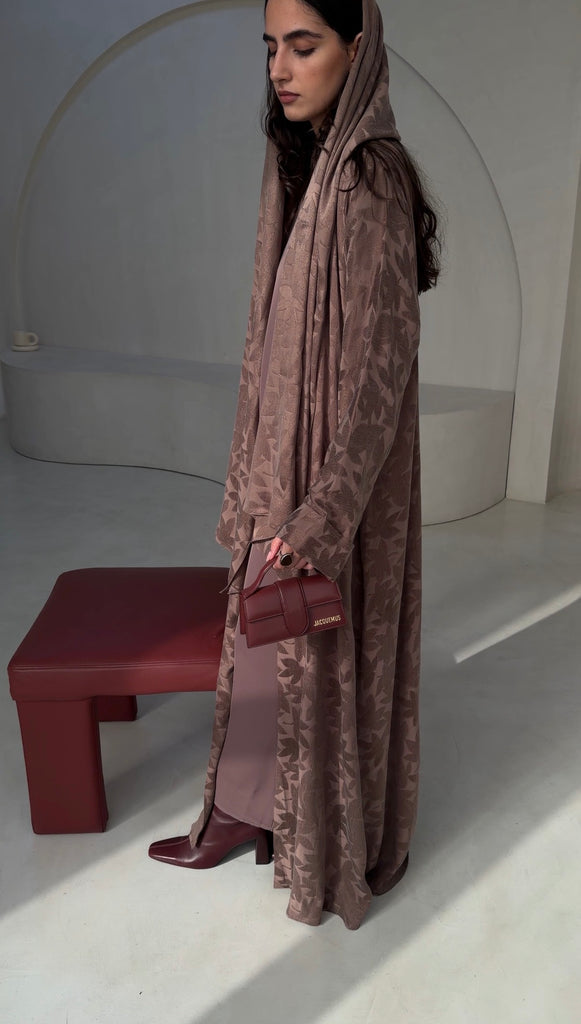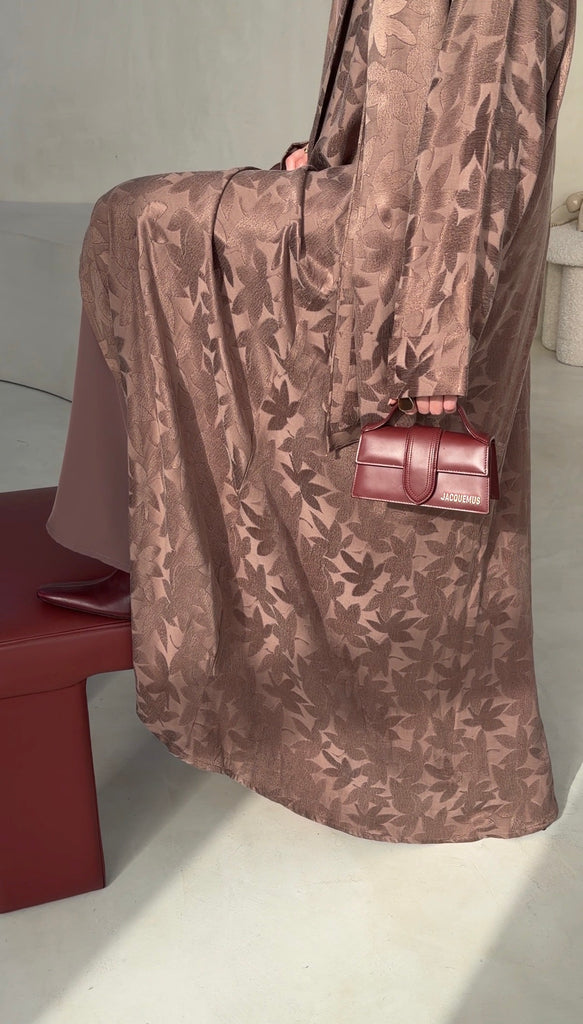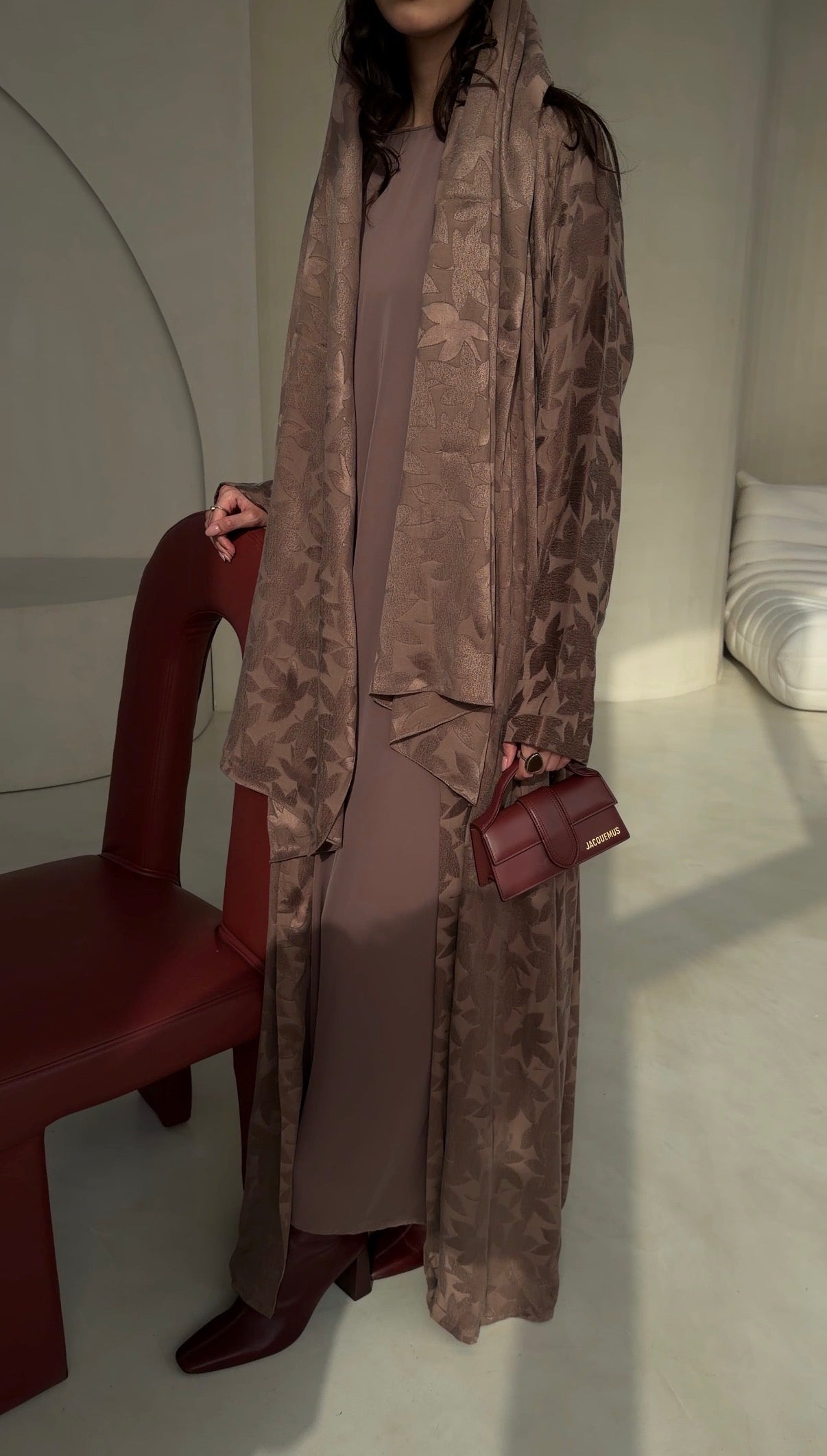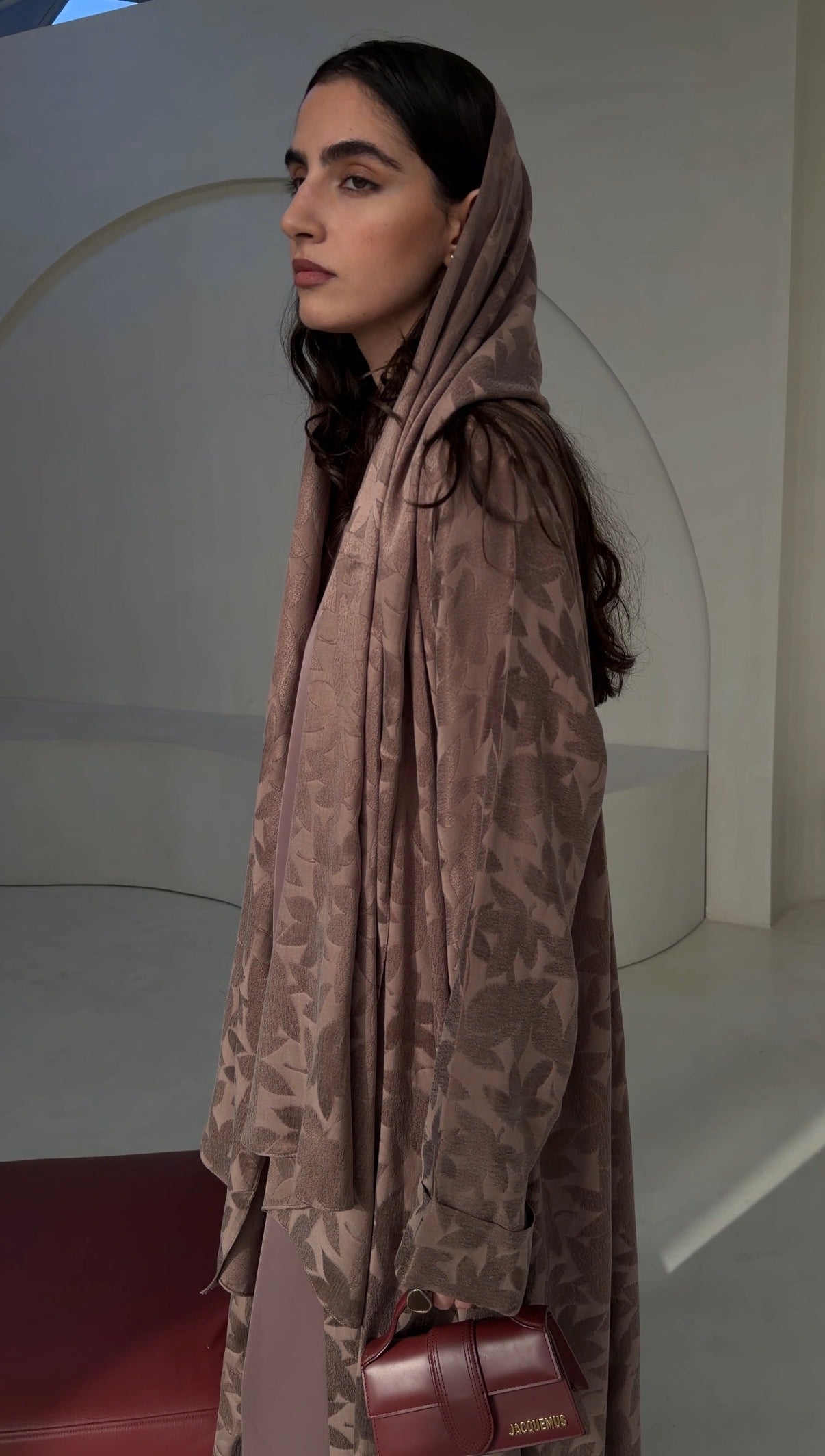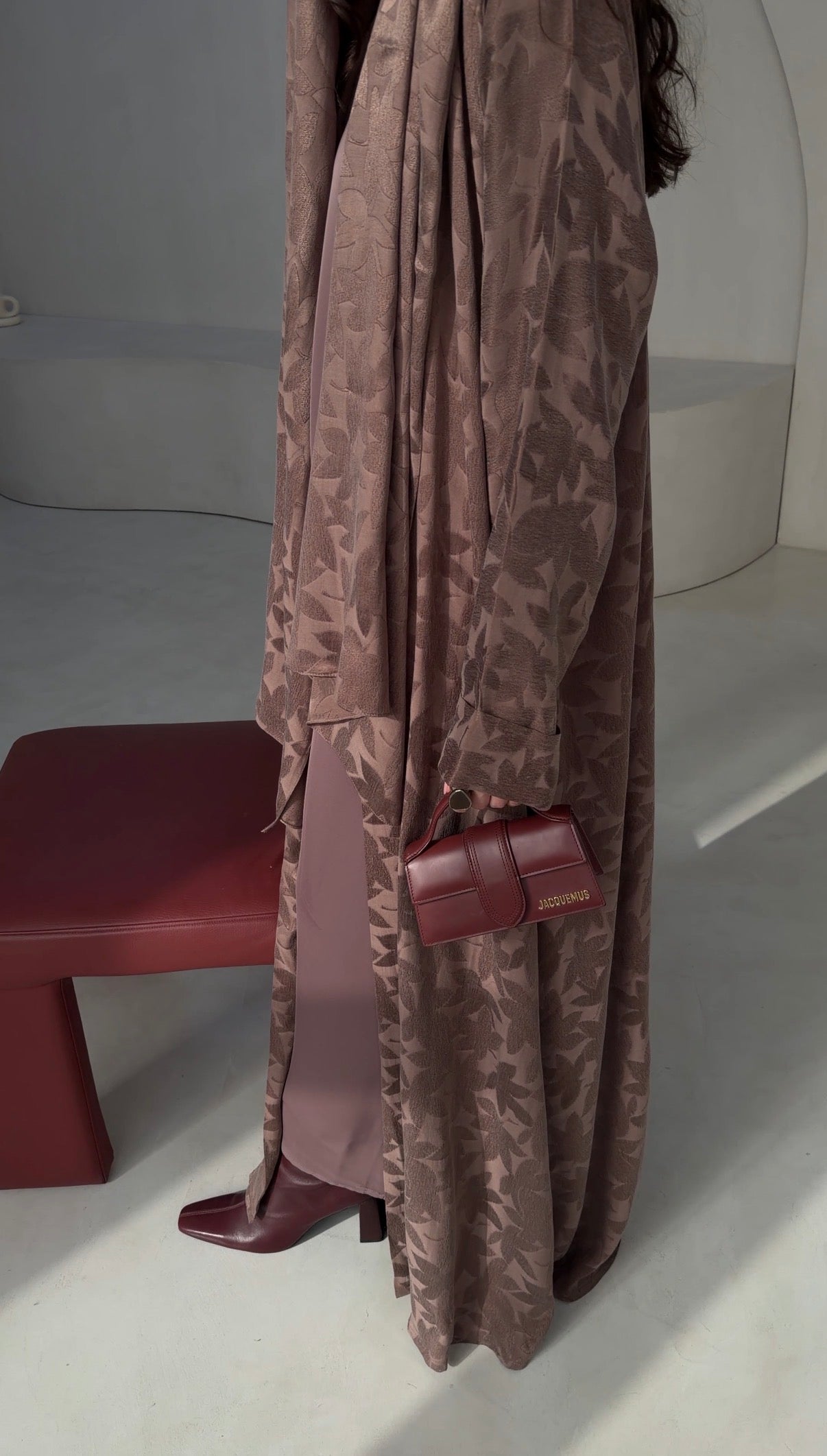 Suede-touch jacquard — a medium-light textured weave that combines matte and glossy threads for depth. Not see-through